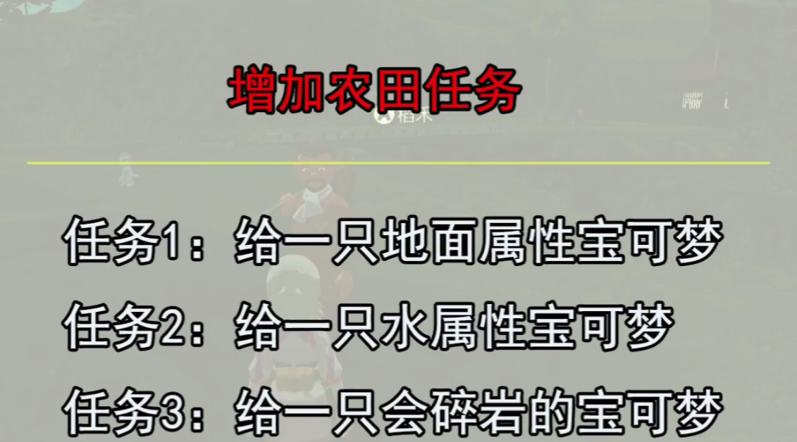 3.每完成一次任務,就可以增加一塊農場,最多可增加三塊農場,給予的寶可夢後續可以替換。完成任務後,玩家可以進地圖返回村子刷新任務繼續接開土地的任務了。
