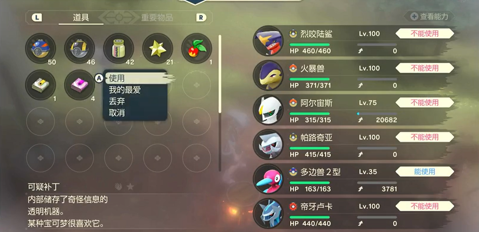 首頁 寶可夢傳說:阿爾宙斯 問答 寶可夢傳說:阿爾宙斯可疑補丁可以進化哪些寵物? 2022-07-06 寶可夢傳說:阿爾宙斯遊戲中,可疑補丁是一種進化攜帶物品。多邊獸Ⅱ攜帶該道具連接交換進化為多邊獸Z。也就是說目前已知可疑補丁只能用來進化多邊獸2型為多邊獸乙型。