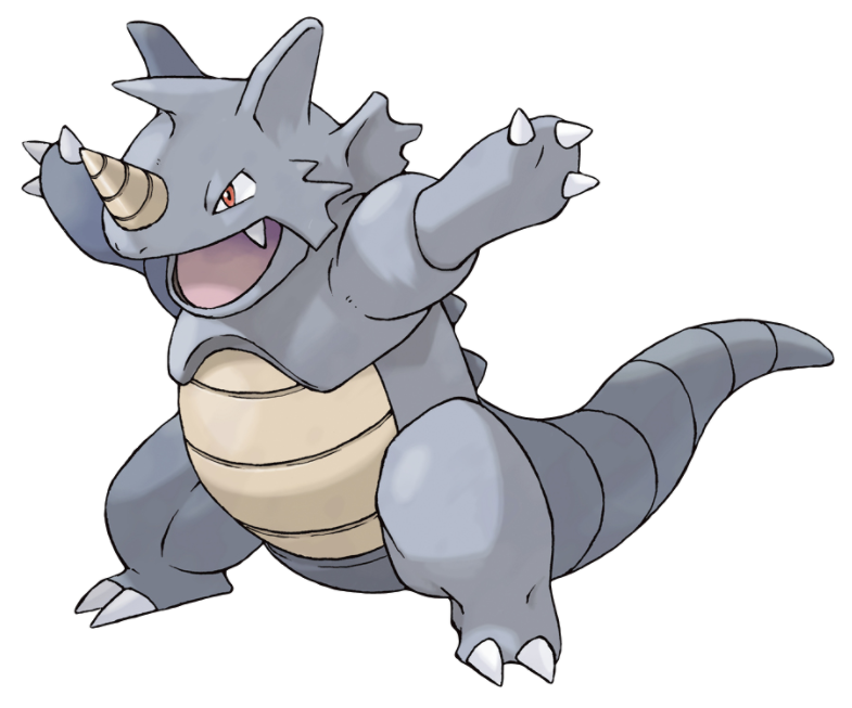 它的外形有點像恐龍,全身呈灰色,額頭上有一個很尖銳的鑽錐,是很有力的武器。手上擁有三個抓,頭上有幾個突出來的尖角,背部上有幾個尖刺物,龐大的腳上有二個抓,粗壯有力,頸部粗且短,其上有個弘形的盔甲,擁有一條強而有力的尾巴。輕輕地轉動角就能粉碎鑽石,尾巴一揮就能毀掉大樓,是力量強大的寶可夢。