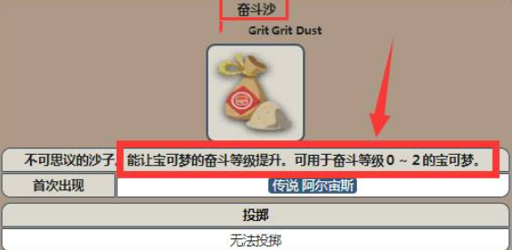 首頁 寶可夢傳說:阿爾宙斯 問答 寶可夢阿爾宙斯奮鬥沙有什麼用? 2022-07-06 在寶可夢阿爾宙斯中,奮鬥沙是一粒不可思議的沙子,在遊戲中它可以用於奮鬥等級0-2的寶可夢,能讓這些寶可夢的奮鬥等級得到提升,具體作用可見下圖: