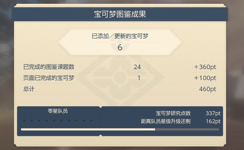首頁 寶可夢傳說:阿爾宙斯 問答 阿爾宙斯怎麼快速升星? 2022-07-06 寶可夢傳說:阿爾宙斯玩家可以通過增加完成的圖鑒課題數(如下圖完成24增加360pt)和完成的寶可夢(如下圖完成1增加100pt)來增加總計pt來快速提升星級。