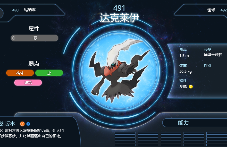 1、在寶可夢傳說中,噩夢神原名叫「達克萊伊」,是一隻惡屬性的傳說寶可夢,特性是夢魘,其捕捉難度較大。