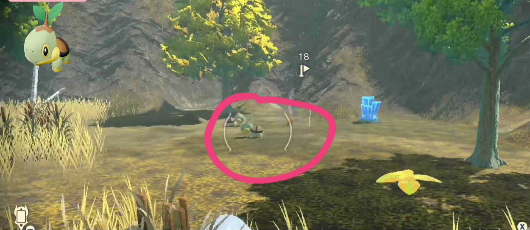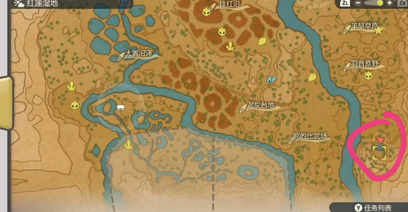 首頁 寶可夢傳說:阿爾宙斯 問答 阿爾宙斯嫩苗龜在哪抓? 2022-07-06 1.寶可夢傳說:阿爾宙斯嫩苗龜的抓捕位置在紅蓮濕地羽音原野下面圓形湖的地方,具體位置如下圖所示標記處。2.在圓形湖旁會看到一兩隻的嫩苗龜。