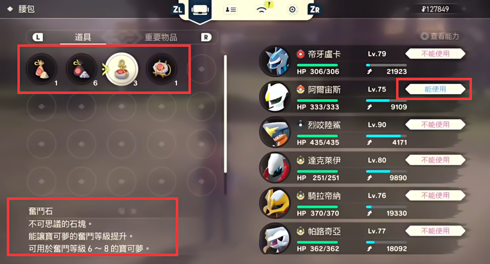3、獲得道具後,打開背包並對寶可夢使用,即可提升相應的奮鬥等級。