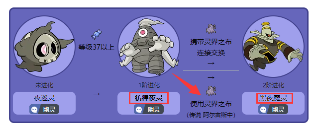 首頁 寶可夢傳說:阿爾宙斯 問答 阿爾宙斯彷徨夜靈怎麼進化黑夜魔靈? 2022-07-06 1、在寶可夢阿爾宙斯中,彷徨夜靈並不是通過等級進化的,而是需要使用道具【靈界之布】後,才能進化成為黑夜魔靈,進化後各方面的屬性與能力值都會有所提高。2、彷徨夜靈是一隻幽靈屬性的寶可夢,弱點是幽靈系和惡系,特性是壓迫感。