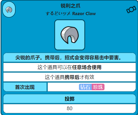 首頁 寶可夢傳說:阿爾宙斯 問答 阿爾宙斯銳利之爪有什麼用? 2022-07-07 寶可夢傳說中的阿宙斯銳利之爪是尖銳的爪子,攜帶後,招式會變得容易擊中要害,這個道具可以在任意場合使用,但是要攜帶之後才有效。