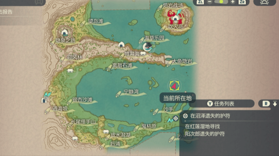 1:直接來到紅蓮濕地的緋紅沼那裡就可以看到,因為都是沼澤而且眷戀的速度特別快,主角在這里跑有點困難,可以利用月月熊坐騎(追著眷戀雲跑,然後他發動攻擊的時候找出空檔鑽過去或直接丟球砸),我這里用的是勇士雄鷹,在眷戀雲的面前直接降落丟球砸!