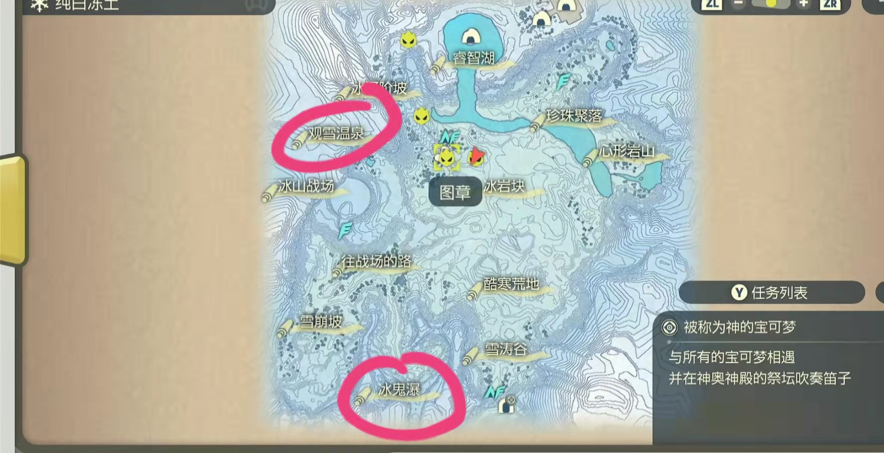 首頁 寶可夢傳說:阿爾宙斯 問答 寶可夢傳說:阿爾宙斯路卡利歐在哪抓? 2022-07-07 1.寶可夢傳說:阿爾宙斯路卡利歐的主要棲息地在純白凍土的冰鬼瀑和觀雪溫泉。2.觀雪溫泉和冰鬼瀑的具體位置如下圖所示。3.到這里就可以看到路卡利亞。