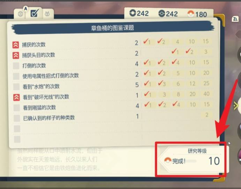 3、遊戲里研究等級最高為10級,達到10級就完成寶可夢圖鑒課題了。
