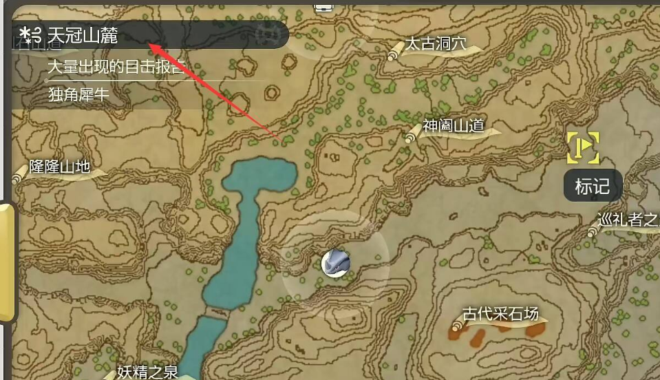 首頁 寶可夢傳說:阿爾宙斯 問答 阿爾宙斯頭蓋龍哪裡抓? 2022-07-07 1、進入到遊戲中,選擇打開天冠山麓地圖。2、點擊標記下圖所示的位置,接著到達指定位置。3、到達標記處之後,到處逛一逛,在那個地點附近就能找到頭蓋龍。