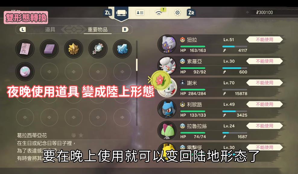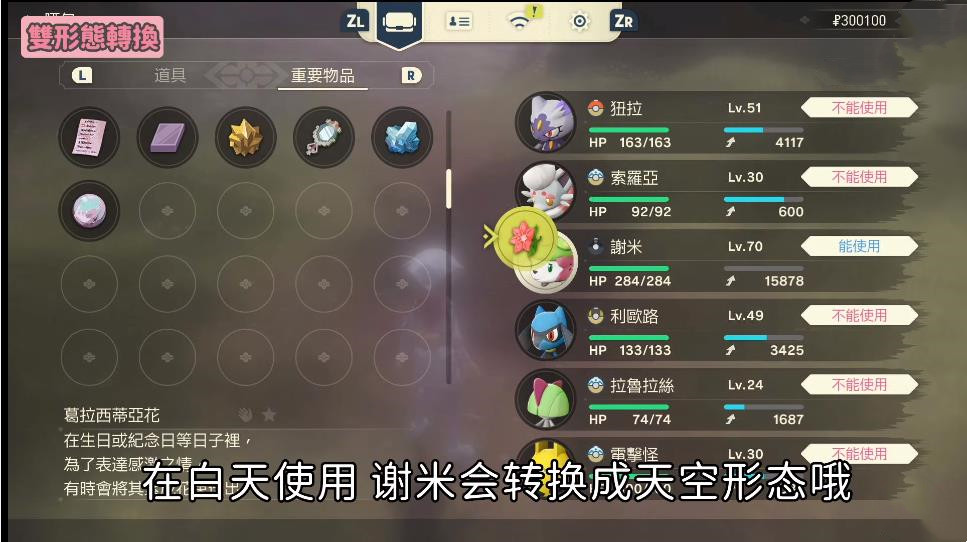 4、用道具葛拉西蒂亞花在白天使用,謝米就會轉變成天空形態。
