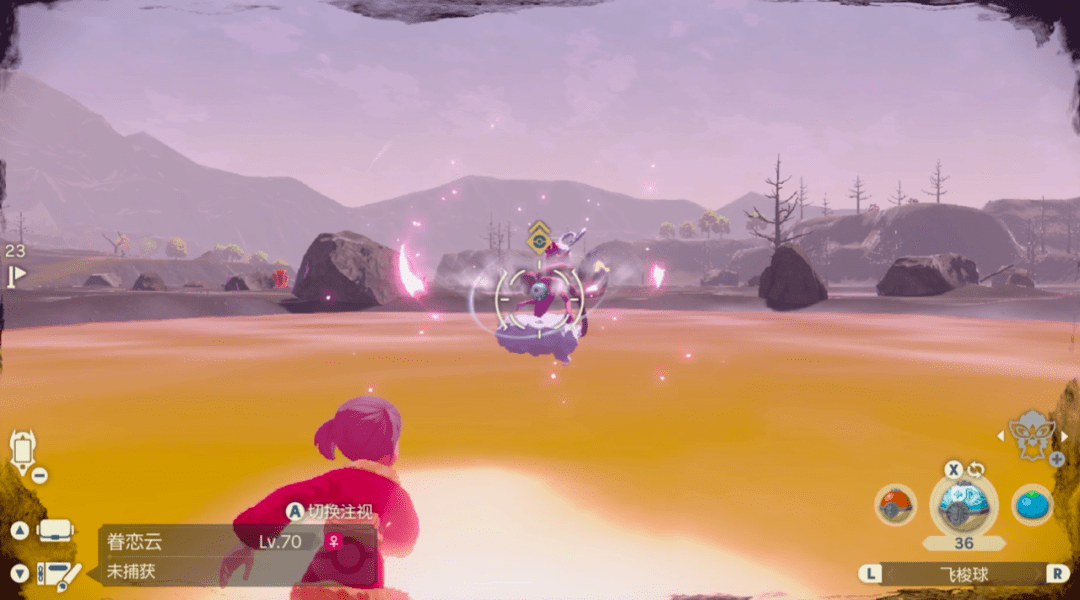 2、在這里可以遇到土地雲,他會反覆的跑並用技能攻擊我們,我們要用球去砸他打出硬直去捕捉他,最好趁他硬直的時候放出寶可夢去與其戰斗,要不然直接丟球沒有捕捉成功就要繼續去丟球打出硬直!