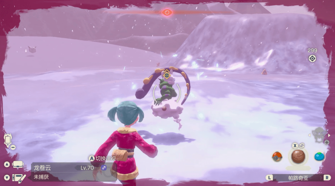 2、與土地雲差不多,龍捲雲也是反覆跑,但純白凍土的寶可夢實在太多了,第一次進攻可以考慮用煙霧彈逐漸接近,之後利用坐騎的速度優勢進行追捕,推薦用勇士鷹,畢竟下面的寶可夢實在太多了。