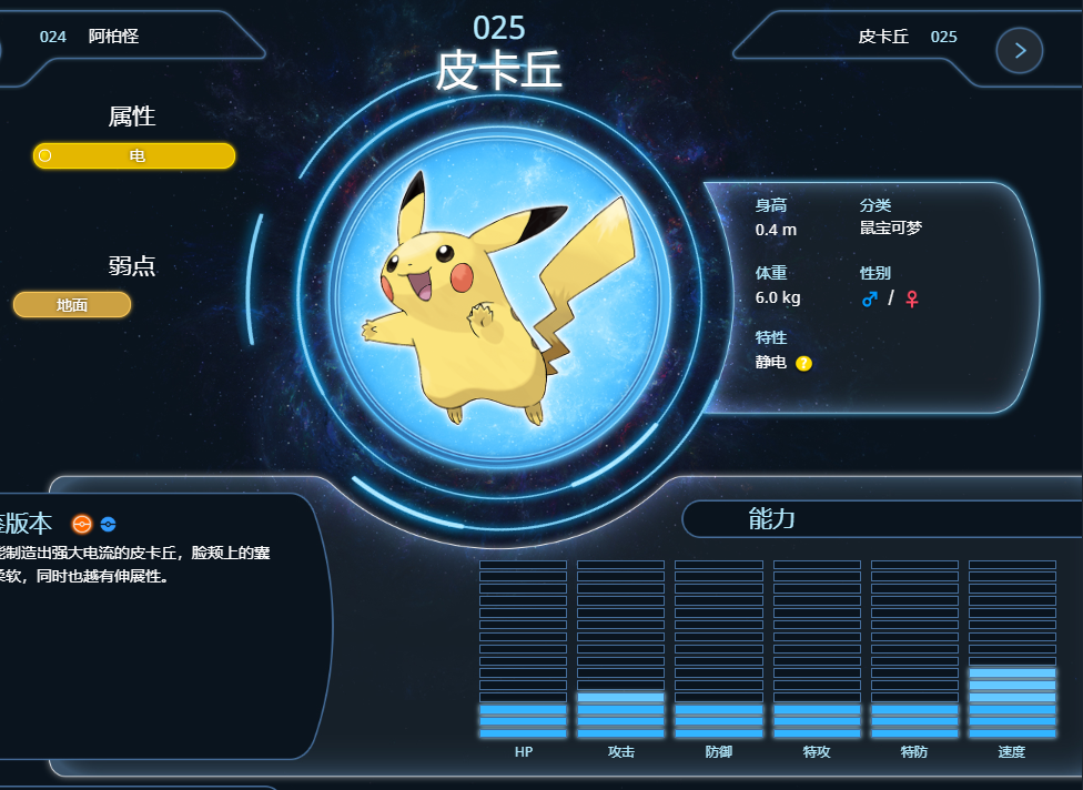 1、在寶可夢阿爾宙斯中,皮卡丘是一隻電屬性的寶可夢,特性是靜電,該特性有一定幾率會讓接觸到的對手麻痹,皮卡丘自身的物攻與速度都比較高,其他能力也較為均衡。
