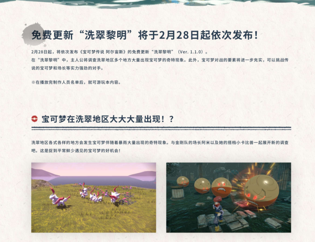 一、根據官方消息寶可夢傳說:阿爾宙斯dlc內容有洗翠黎明;寶可夢在洗翠地區大大大量出現,如下圖所示