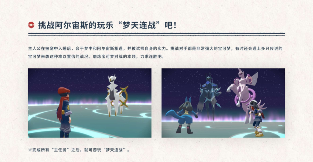 二、挑戰阿爾宙斯的玩樂「夢天連戰」,如下圖所示