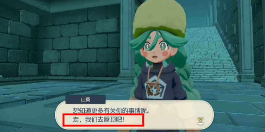 4、勝利之後,沿樓梯繼續往上,去往【屋頂】。