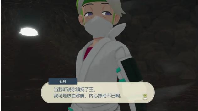 10、第十章、守護。在洞窟遇到石月,他表面上是名老頭,實際上是保護馬加木的忍者護衛,擊敗他。