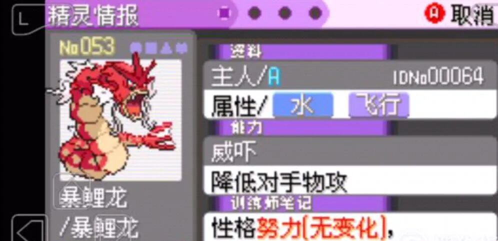 首頁 寶可夢傳說:阿爾宙斯 問答 寶可夢暴鯉龍是什麼屬性? 2022-07-09 暴鯉龍是水屬性和飛行屬性寶可夢,雖然鯉魚王進化成暴鯉龍擁有飛行屬性,可以參加空中對戰,但實際上暴鯉龍無法學會飛翔,暴鯉龍的外形像龍,基於蛟龍和中國龍,它的外貌就像是在恐嚇別人,被分類為凶惡寶可夢,頭上有青色的向上的三個角。