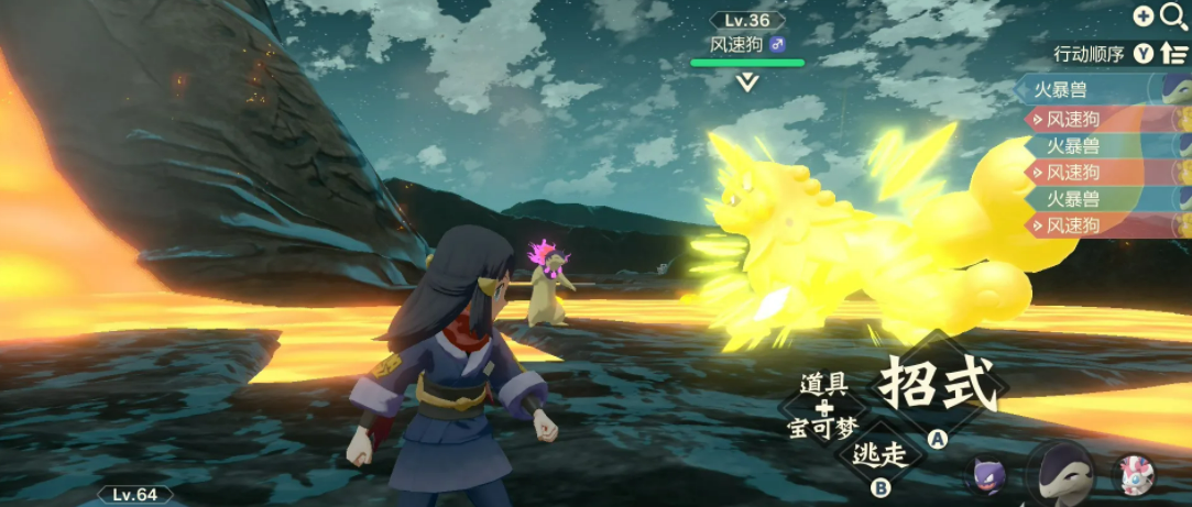 4、鎮撫寶可夢:Lv36風速狗為洗翠樣子,火和岩石屬性,弱點:地面和水,其次是格鬥和岩石。