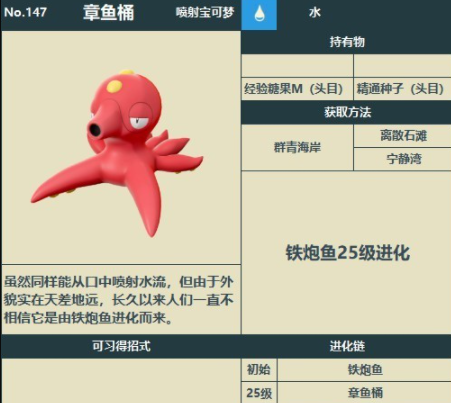 首頁 寶可夢傳說:阿爾宙斯 問答 阿爾宙斯章魚桶哪裡多? 2022-07-09 章魚桶在群青海岸的群青海岸,離散沙灘-望島灘,寧靜灣能夠找到哦,章魚桶在遇到危險的時候,會噴出迷惑敵人的墨汁,能夠使敵人短暫的失去嗅覺。