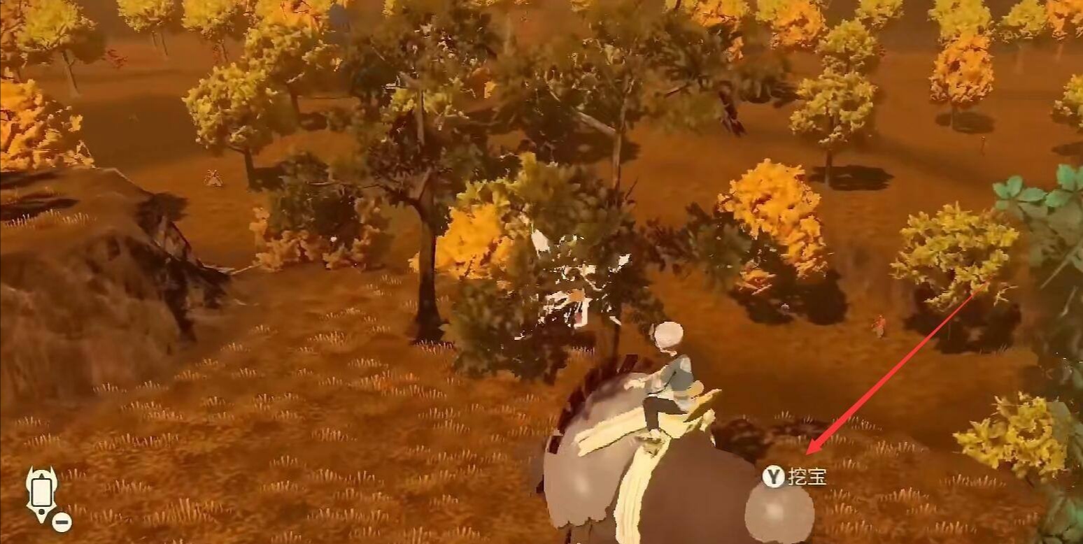 2、搜索一段時間後,界面有物資的地方會顯示挖寶兩個字,我們找到挖寶位置,如下圖所示: