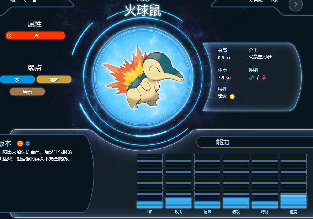 1、在寶可夢阿爾宙斯中,御三家選擇【火球鼠】比較好,這是一隻火屬性的寶可夢,特性是猛火,擁有較高的物攻、特攻和速度,能作為團隊的主力輸出。