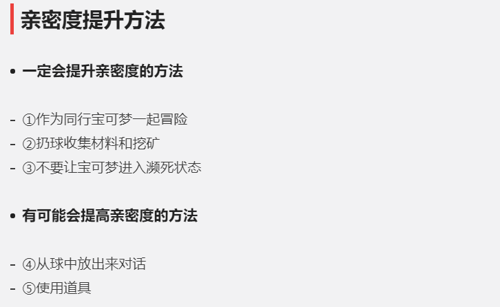 首頁 寶可夢傳說:阿爾宙斯 問答 寶可夢傳說:阿爾宙斯友好度怎麼刷? 2022-07-09 一定會提升親密度的方法:作為同行寶可夢一起冒險;扔球收集材料和挖礦;不要讓寶可夢進入瀕死狀態。有可能會提高親密度的方法:從球中放出來對話;使用道具。