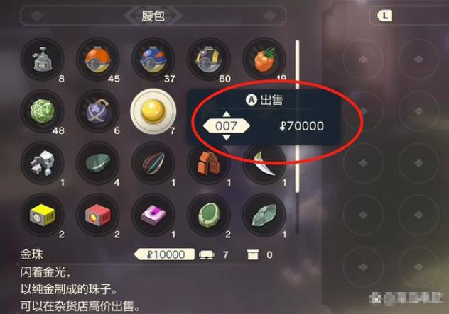 1,點擊ZR鍵可以出售我們的道具,把金珠這種高價值道具賣掉。