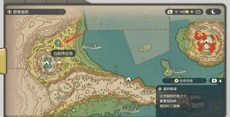 5、人氣最高的波加曼則是在群青海岸,如下圖所示紅色箭頭的位置。