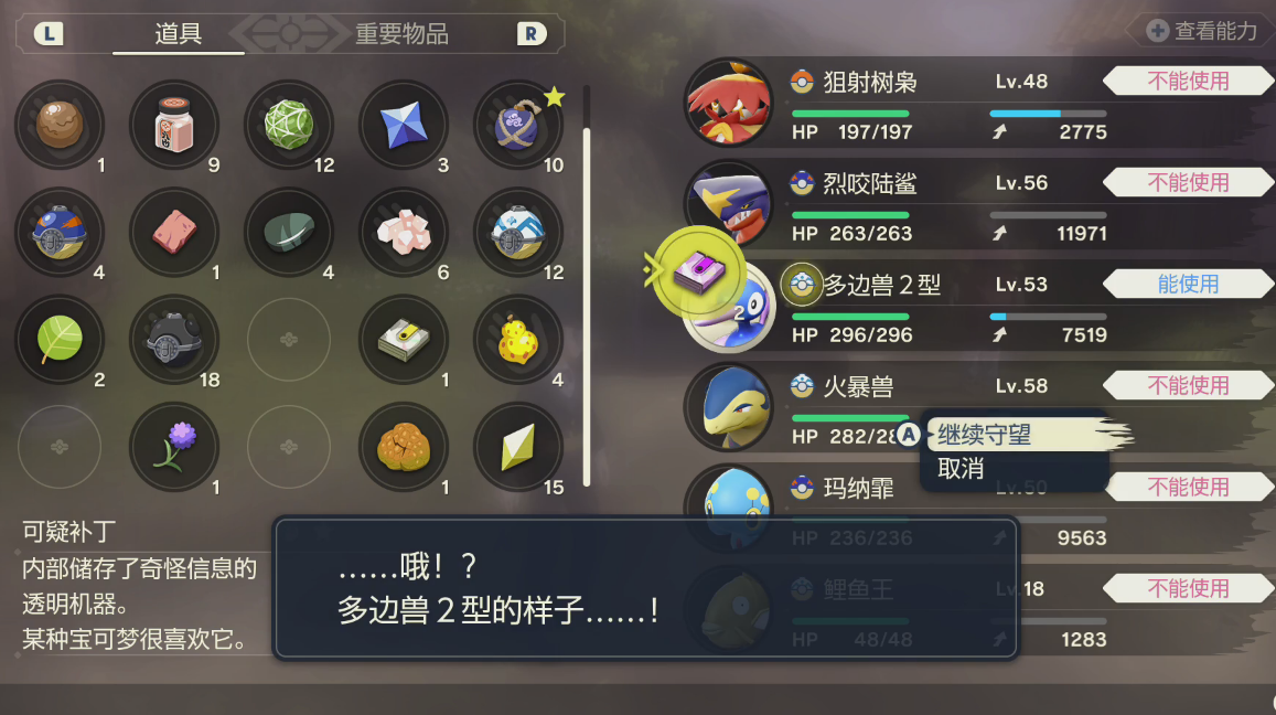 首頁 寶可夢傳說:阿爾宙斯 問答 寶可夢傳說:阿爾宙斯多邊獸2型怎麼進化? 2022-07-09 【寶可夢傳說:阿爾宙斯】中,多邊獸2型進化需要用到道具可疑補丁才能進化成為多邊獸乙型。1、打開腰包,找到可疑補丁,選擇使用;2、將可疑補丁移到多邊獸2型頭像上,選擇繼續守望;3、多邊獸2型進化成為多邊獸乙型。