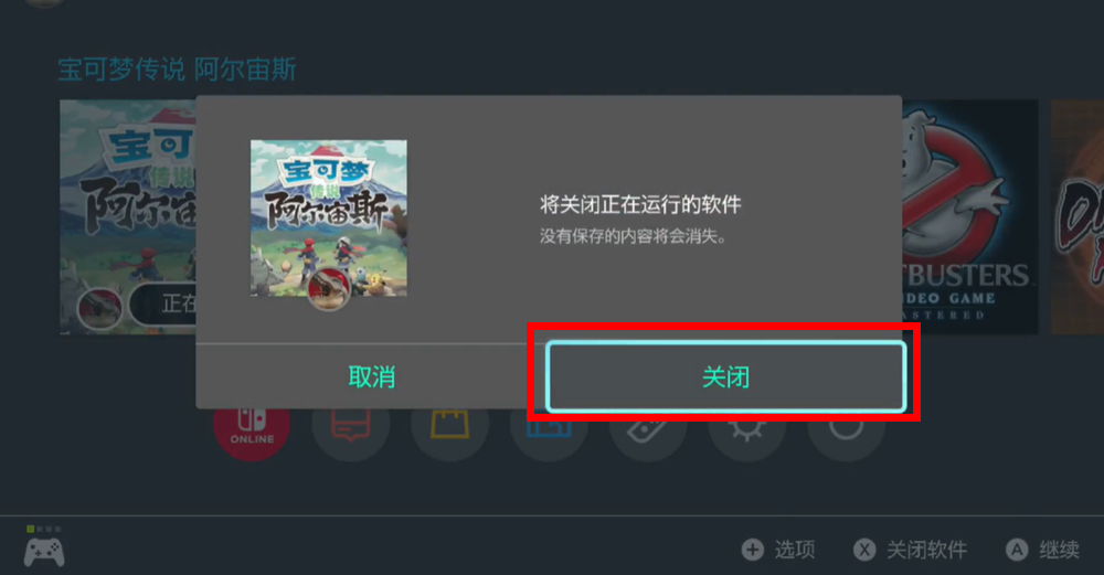 《寶可夢傳說:阿爾宙斯》中要讀檔就要先存檔,然後再關掉遊戲重新進入,即可讀取前面已存下的記錄。