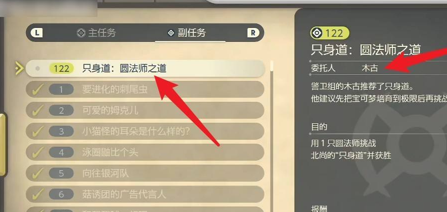3、隻身道圓法師之道任務需要玩家有一隻圓法師寶可夢,然後點擊開始。