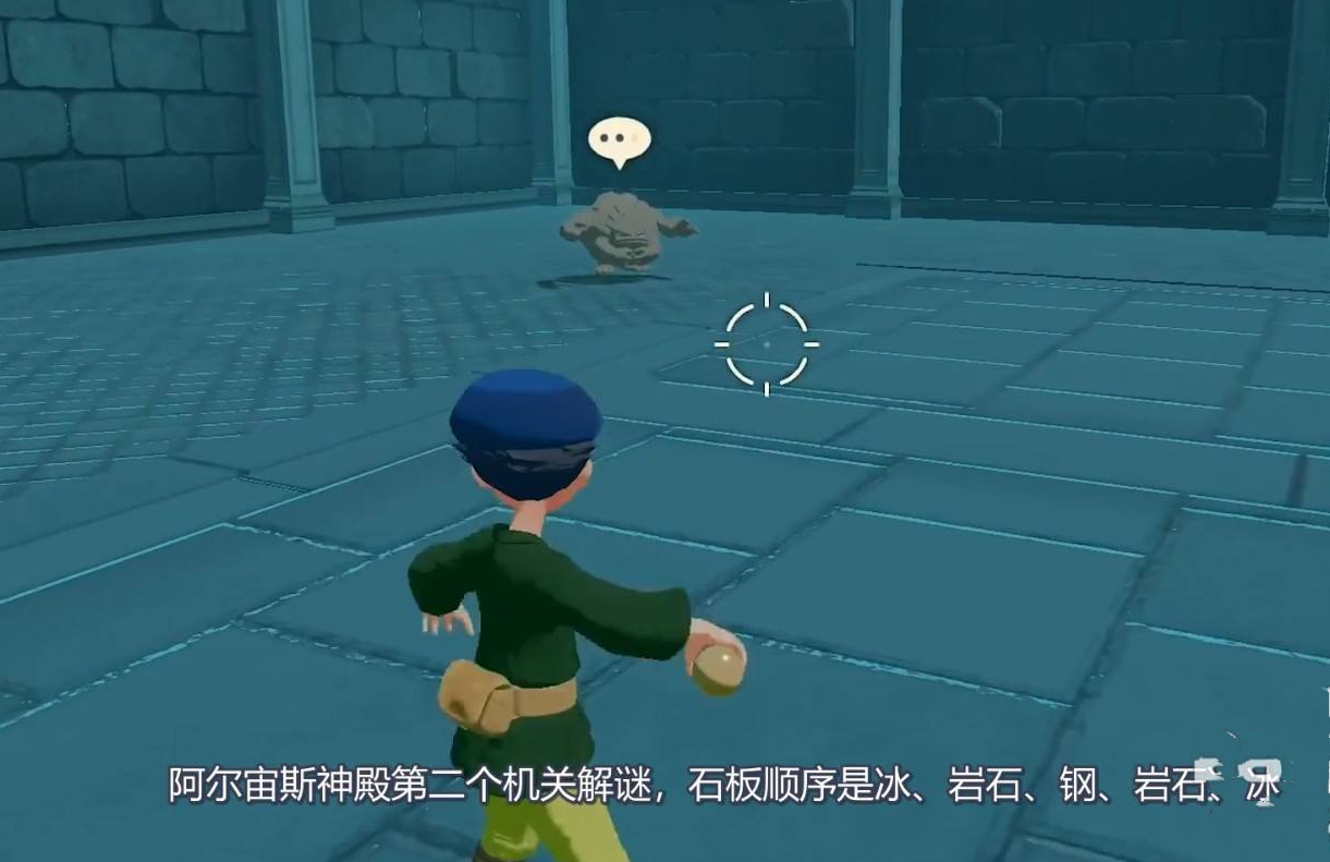 1、第一個機關解謎,石板順序分別是岩石、鋼、冰。