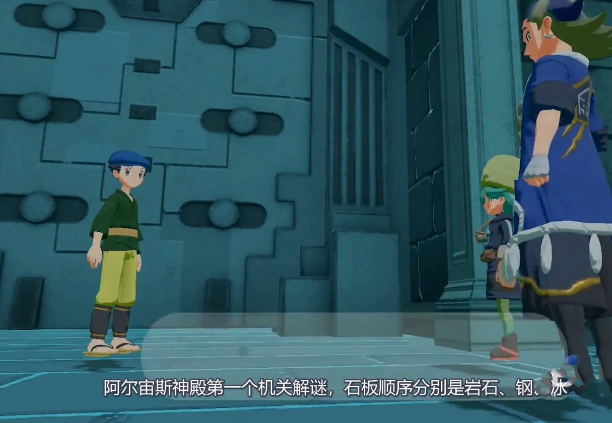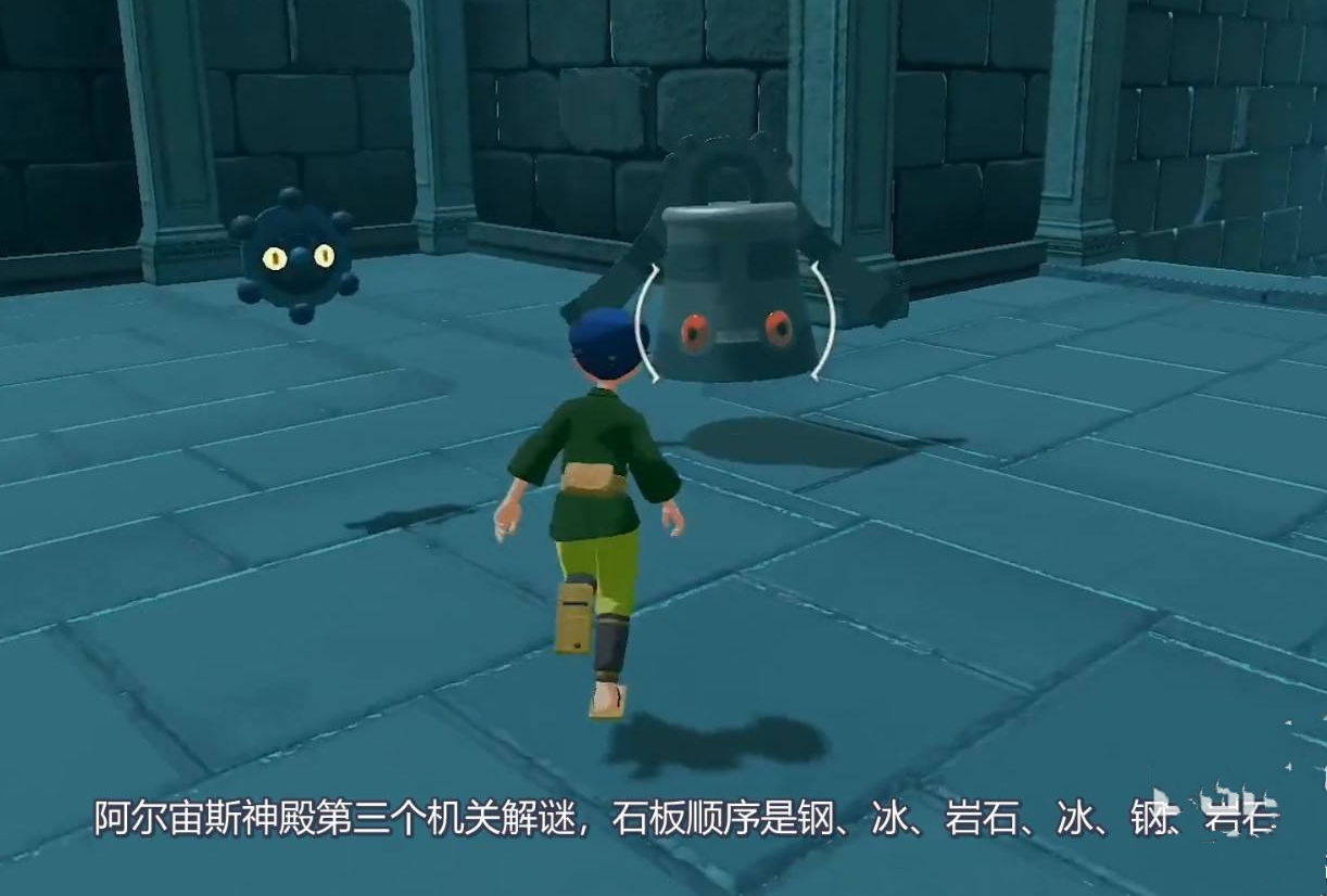 3、第三個機關解謎,石板順序是鋼、冰、岩石、冰、鋼、岩石。