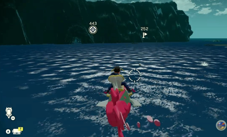 4、上交任務獲得【幽尾玄魚丸】,然後前往海邊,獲得【水滴石板】,就可以衝浪了(之前所有區域的水域都可以通過水路到達了)。騎魚前往吹火島,路上可以練習一下跳躍丟球。