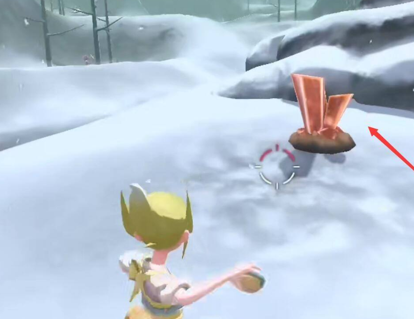 4、或者我們來到純白凍土地圖找到這種紅色的礦石。