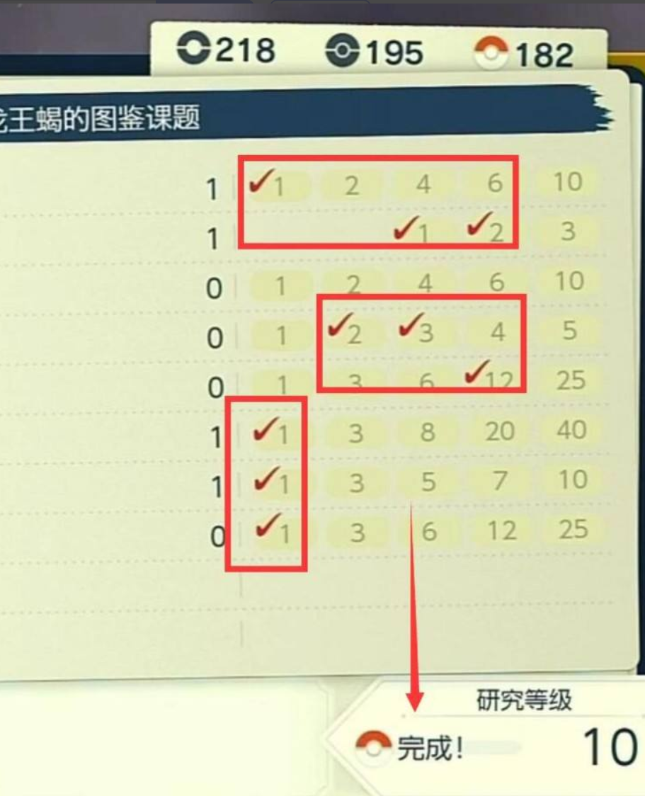 首頁 寶可夢傳說:阿爾宙斯 問答 阿爾宙斯完成圖鑒是什麼意思? 2022-07-12 1、完成圖鑒的意思是已經收集完成了寶可夢的圖鑒。方法是根據每個寶可夢的要求來完成前面帶紅箭頭的課題。2、接取任務之後按照提示來完成。如圖所示3、當做滿9個勾,就可以收集滿當前寶可夢的圖鑒。