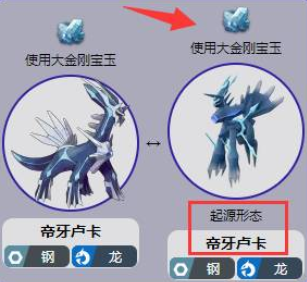 首頁 寶可夢傳說:阿爾宙斯 問答 寶可夢傳說:阿爾宙斯帝牙盧卡起源形態怎麼得? 2022-07-12 在寶可夢阿爾宙斯中,帝牙盧卡的起源形態是通過對帝牙盧卡使用金剛寶玉轉變而來的,這樣我們就可以獲得帝牙盧卡的起源形態了。如下圖所示: