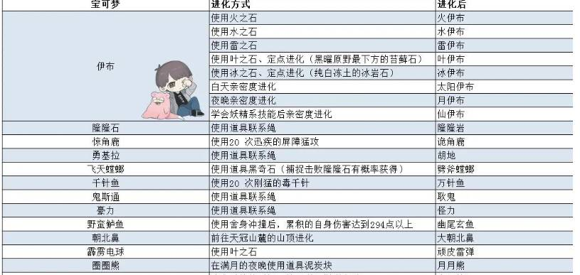 4、而且寶可夢的進化方式很多,不同的寶可夢進化的方式也不同。如下是一些寶可夢進化所需要的物品或者需求。