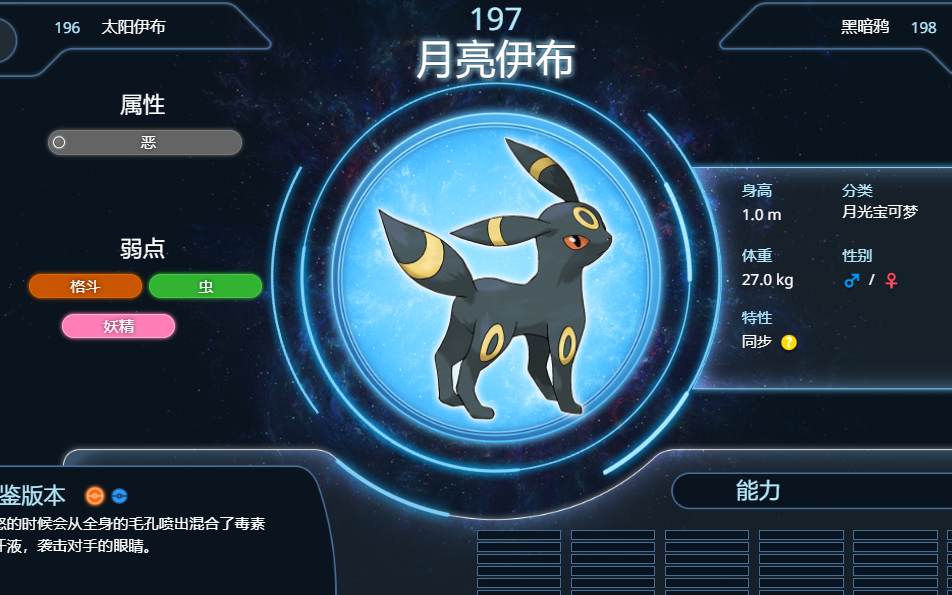 首頁 寶可夢傳說:阿爾宙斯 問答 阿爾宙斯八個伊布哪個最強? 2022-07-13 1、在寶可夢阿爾宙斯中,8個伊布中最強的是【月亮伊布】,如下圖所示,月亮伊布是一隻惡屬性的寶可夢,特性是同步。2、月亮伊布的種族值如下圖所示,該寶可夢的HP、防禦和特防值都很高,在各時期都能夠發揮穩定,很適合團隊搭配。
