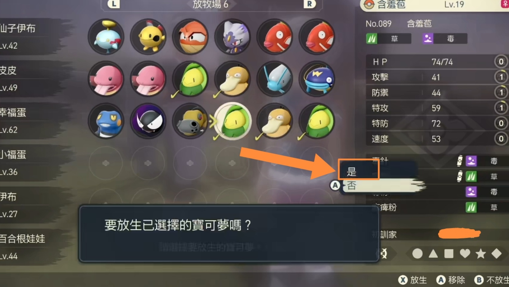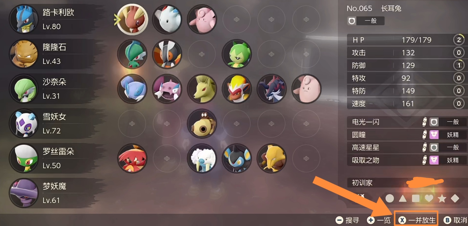首頁 寶可夢傳說:阿爾宙斯 問答 寶可夢傳說:阿爾宙斯怎麼批量放生? 2022-07-13 1、打開寶可夢,可以看到右下角有一個「一併放生」2、在盒子里,按下「X」,點擊選擇想要放生的寶可夢3、選好了想要放生的寶可夢,點擊「是」,就可以批量放生了