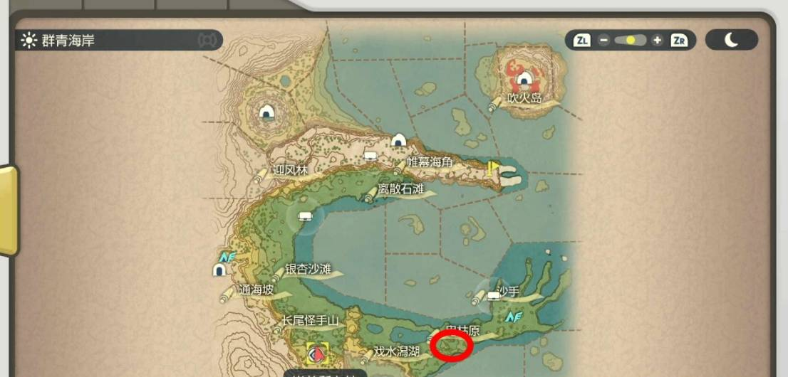 4.玩家與瓜娜對話結束後,就可以前往【沙手】了,然後去捕捉一隻彷徨夜靈,位置如下圖所示