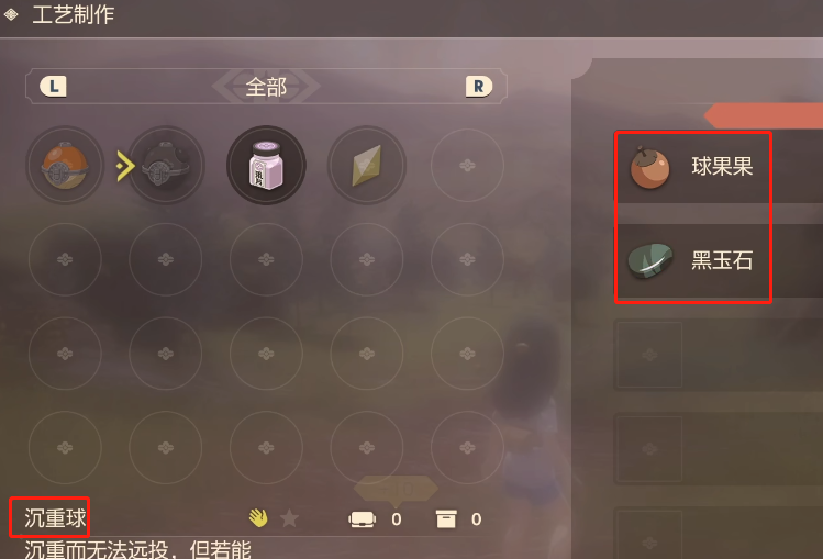 4、最後玩家就可以收集材料進入工藝製作界面選擇沉重球開始製作。