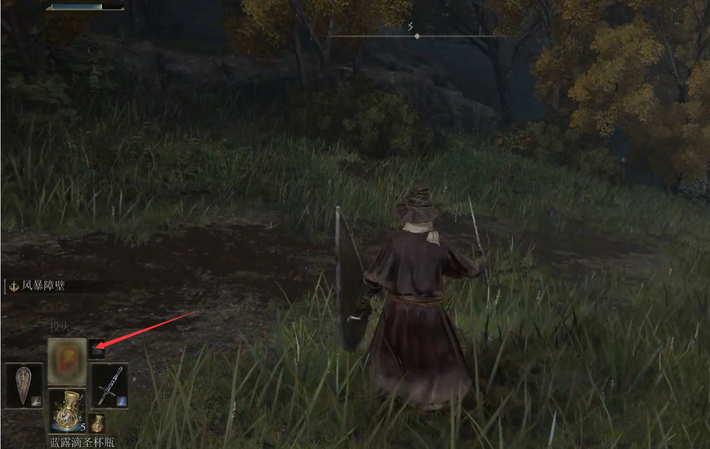 首頁 艾爾登法環 問答 艾爾登法環投火怎麼用 2022-07-20 攻擊時切換到投火(下方的紅色箭頭所指處,此攻擊需要消耗左上角的藍條)之後進行攻擊即可(如果沒這個技能在大賜福孿生老嫗那裡買印記 然後去買投火技能,信仰值達到後就可以放了)