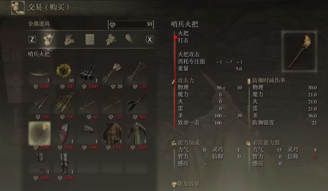 首頁 艾爾登法環 問答 艾爾登法環哨兵火把在哪? 2022-07-21 艾爾登法環哨兵火把的位置:1、首先,我們進入遊戲,打開地圖,移動至下圖所示位置;2、接著,到達目的地後,來到下圖所示的小木屋,與商人對話;3、最後,在商品界面中,選擇火把,即可花費遊戲金幣購買並獲取哨兵火把。