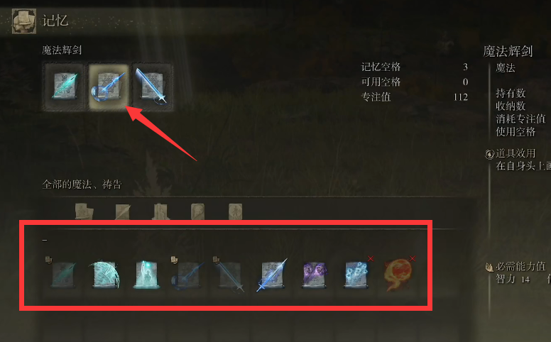 首頁 艾爾登法環 問答 艾爾登法環怎麼換魔法? 2022-07-21 1、找到任意賜福點,在賜福點進行休息。2、休息時會進入引導頁面,點擊「記憶」。3、點擊物品欄里需要更換的魔法,拖動至上方三個記憶格子里就能成功更換魔法了。