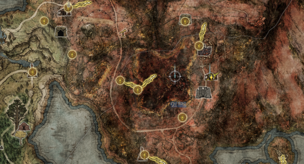 首頁 艾爾登法環 問答 老頭環艾歐尼亞沼澤的金針在哪? 2022-07-21 艾爾登法環純凈金針可以再下圖位置找到,沼澤深處中有一個老將歐尼爾BOSS,該BOSS血厚還會招小怪,比較難打,擊敗之後即可獲得純凈金針和他的武器。