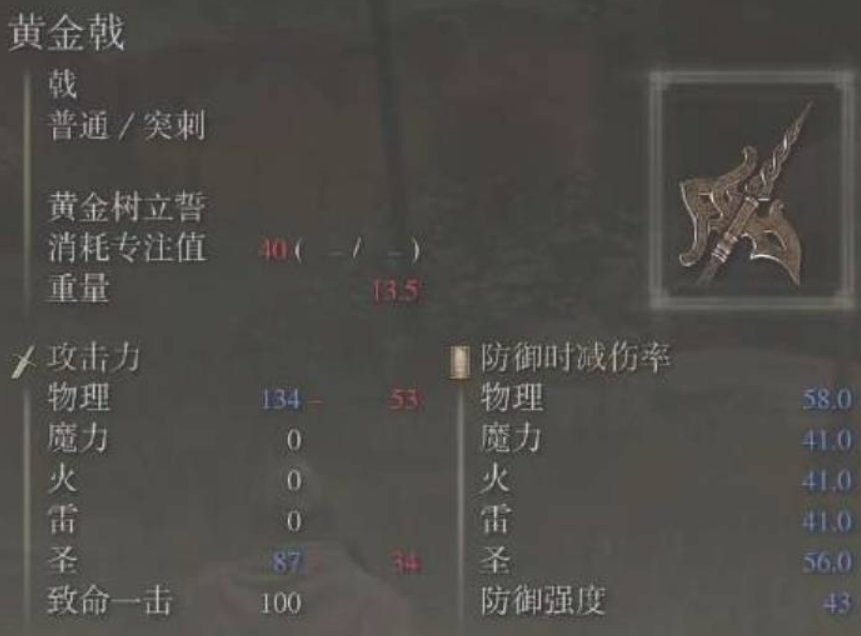 艾爾登法環黃金戟屬性要求比較高,解析如下: