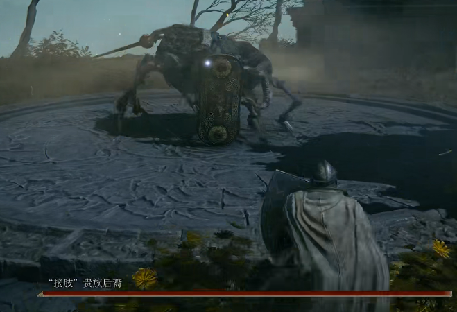 1、進入遊戲後在王侯禮拜堂遇到第一隻怪物接肢貴族後裔,直接被它打死即可。